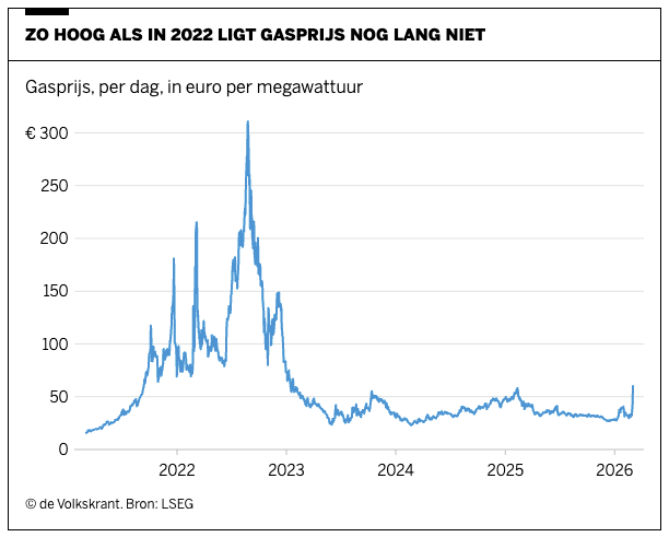 Hoewel gas duurder is dan een maand geleden, ligt het niveau nog altijd in lijn met wat we de afgelopen jaren vaker zagen, en ver onder de pieken van 2022.